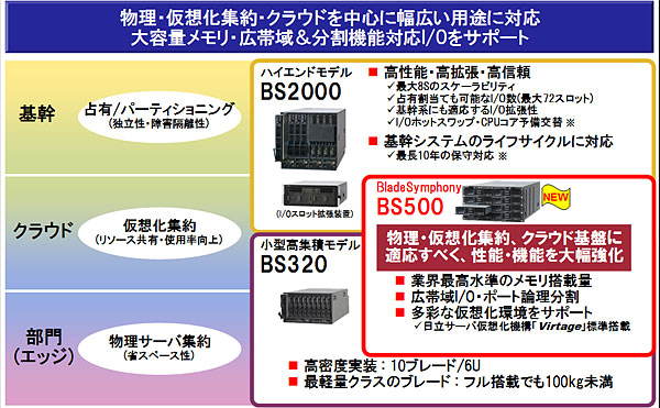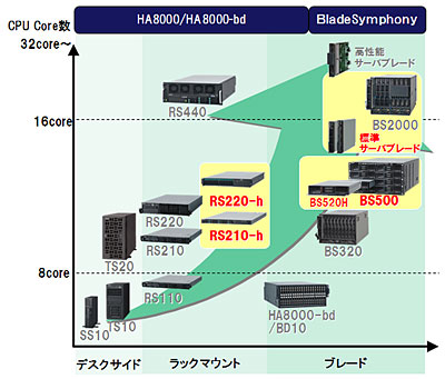 BladeSymphonyの新モデルBS500およびHA8000シリーズのラインアップ強化の位置づけ