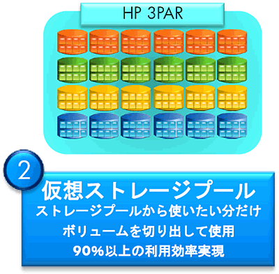 ストレージシステムのディスク使用率が最大90%にまで向上する仮想ストレージプール機能