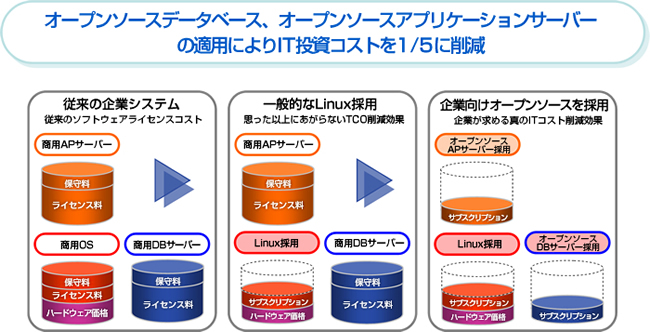 OSSを活用してコスト削減を実現するには、OSSだけではなく、商用ソフトウェアに関する豊富な知識を有した上で、システム全体に渡る最適化を考える必要がある。運用管理の負担や将来の発展性まで考えた上で最適なコンポーネントを選択しないと、逆にコスト増を招いてしまうことも考えられる。OSSにも、運用管理の負担が軽減できる高品質なソフトウェアは多々あるが、どれがそうなのかを見極めるにはソフトウェアの内部構造まで熟知した高い技術力を持つ人材が不可欠だ。となると、ユーザー企業が低コストで競争力の高いITシステムを構築するには、OSSについても豊富な知識と経験を有する優れたSI事業者の力を借りるのが結局は近道だということになる。初期導入コストは少々節約できたとしても、後々の運用管理の負担であっさり逆転してしまう可能性もあることを忘れないようにしたい。