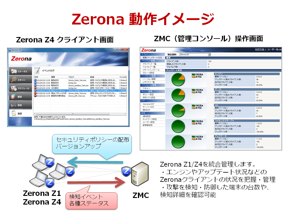 Zeronaには、ここまでに説明したような「コード実行型攻撃」への防御機能に特化したエディションである「Zerona Z1」と、Z1の機能に加えて、3種類の高精度な検知エンジンを持つ「Zerona Z4」の、2つのラインアップが用意されている。