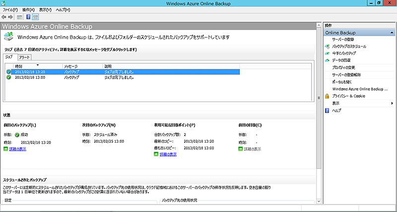 「Windows Azure Online Backup Agent」をインストールすると、クラウドへのバックアップが選択できる(クリックで拡大)