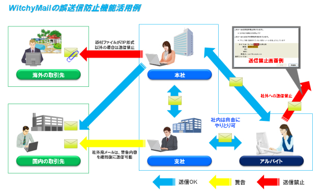 誤送信防止機能、迷惑メール振り分け機能、暗号化など、企業に必要とされるセキュリティ対策が1つに盛り込まれている。