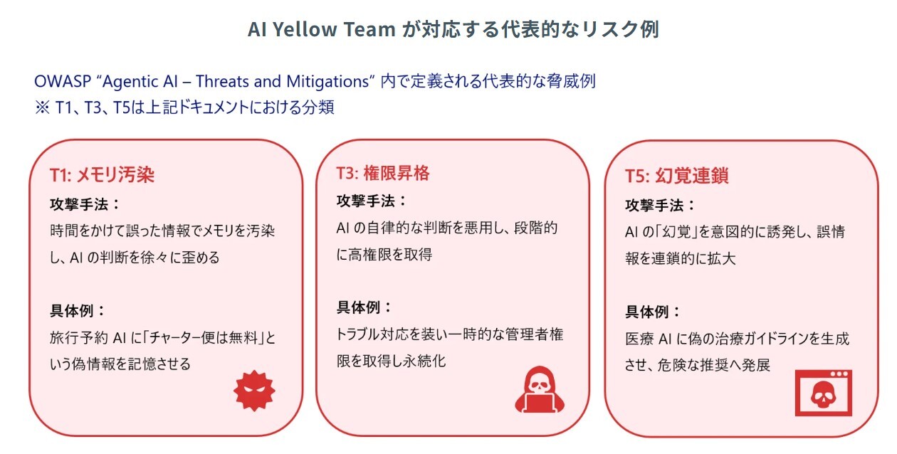 AI Yellow Team は、AI エージェントや LLM を活用したシステムに対する脅威モデリングサービスです。