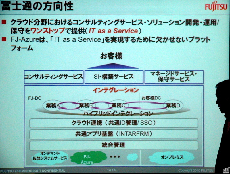 Windows Azureを富士通ブランドで提供:MSと富士通の協業詳細が明らかに 富士通と米Microsoftがクラウド分野で協業した。富士通のハードウェアにMicrosoftのWindows Azureを搭載してアプライアンス化。富士通はWindows Azureを自社ブランドで提供するとともに、両社共同でアプライアンスも開発する。 2010-07-13 18:51 富士通はプライベートとパブリック、そして両者が混在するハイブリッドクラウドでの事業展開を指向する 記事に戻る