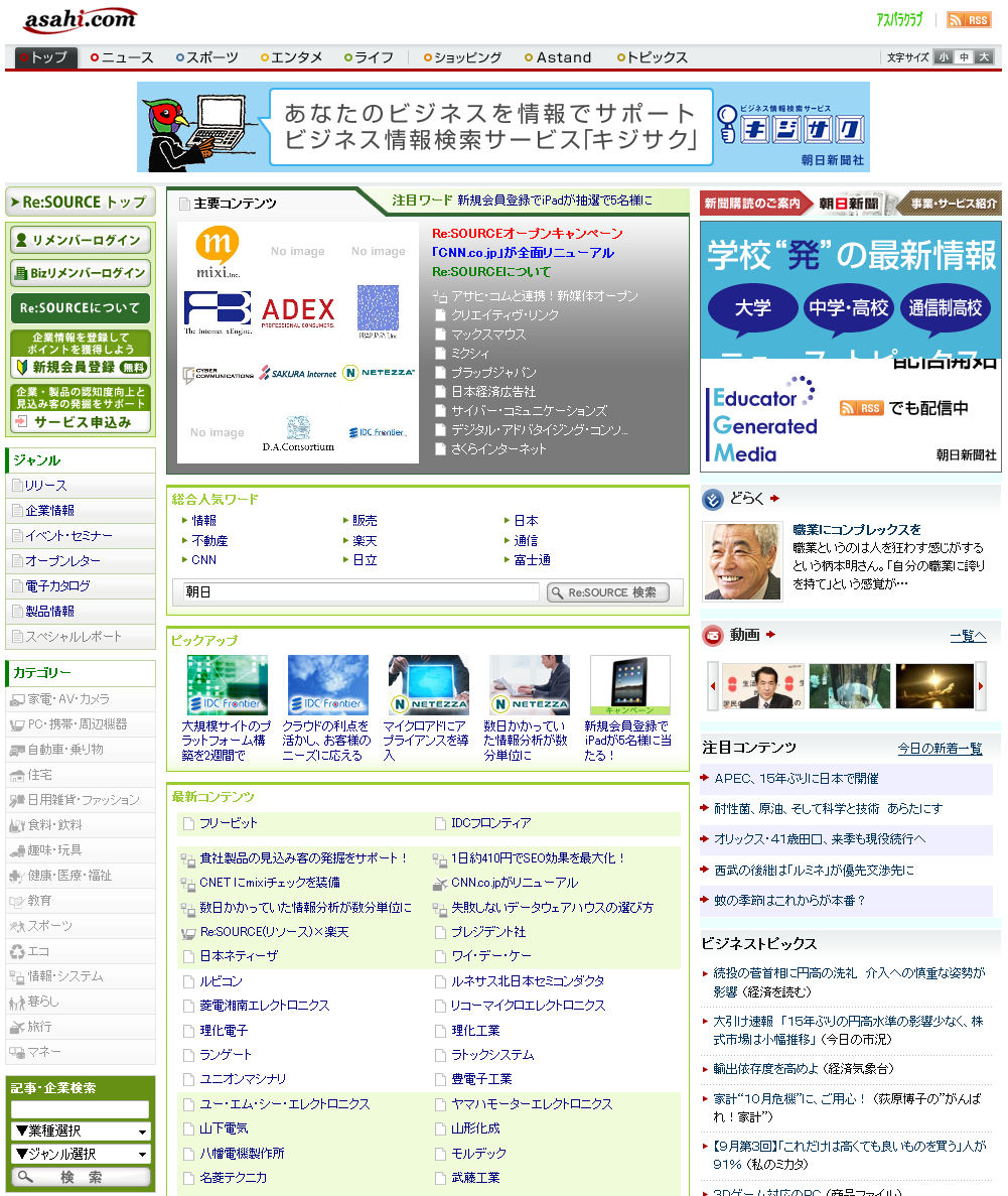 朝日インタラクティブ、企業情報を複数媒体に同時配信する「Re:SOURCE」公開 朝日インタラクティブは、媒体ネットワーク型の新情報サービス「Re:SOURCE」の提供を開始した。カテゴリーの異なる複数のウェブ媒体をネットワーク化し、企業の情報を同時発信できる。 2010-09-15 11:42 アサヒ・コム上でもRe:SOURCEのコンテンツが同時発信される 記事に戻る