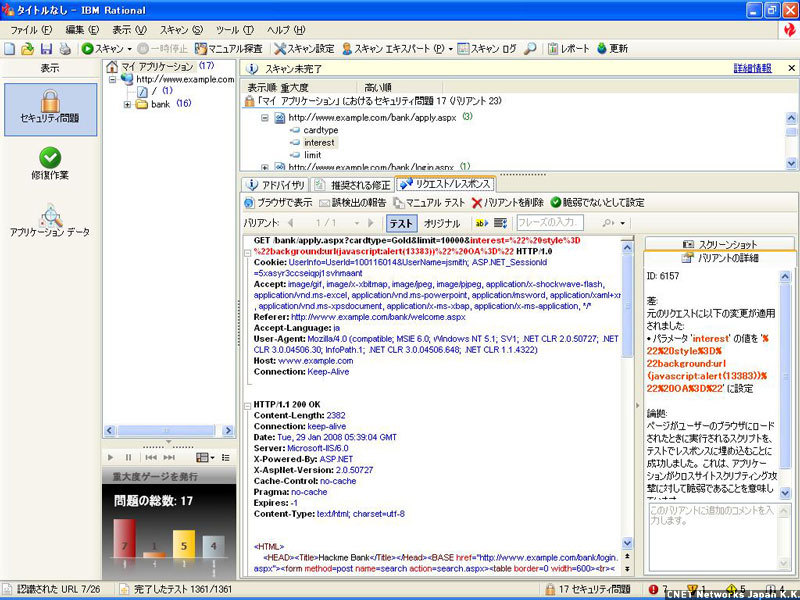 サイト脆弱性をチェックしよう!--第9回:AppScanによるアプリ脆弱性の自動検査 前回まで、主な脆弱性の検査方法について説明してきた。今回は、「IBM Rational AppScan」を例として、自動検査ツールについて説明しよう。 2008-03-11 23:51 記事に戻る