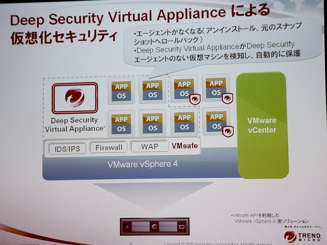 クラウドの懸念はセキュリティ--トレンド、仮想化対応のサーバ保護製品発表 トレンドマイクロは1月21日、サーバ向けセキュリティソリューション「Trend Micro Deep Security」を発表した。物理サーバだけでなく、仮想サーバに対しても一元的にセキュリティ機能を提供する。 2010-01-22 10:45 記事に戻る