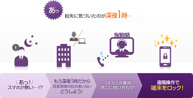 「LanScope An Free」には、もうひとつ特筆すべき点がある。それは月額150円で24時間365日紛失時のリモートロック・ワイプ操作を代行するヘルプデスクサービスをを受けられることだ。同社調べによると1000台のスマートフォンを導入している企業の場合、1週間から2週間に1台の割合でスマートフォンの紛失が発生している。しかも紛失が発覚するのはたいてい夜の時間帯なので、システム担当者が不在の事が多く、即時対策ができる体制を構築する上で、24時間365日の紛失対策サポートは大きなメリットとなる。