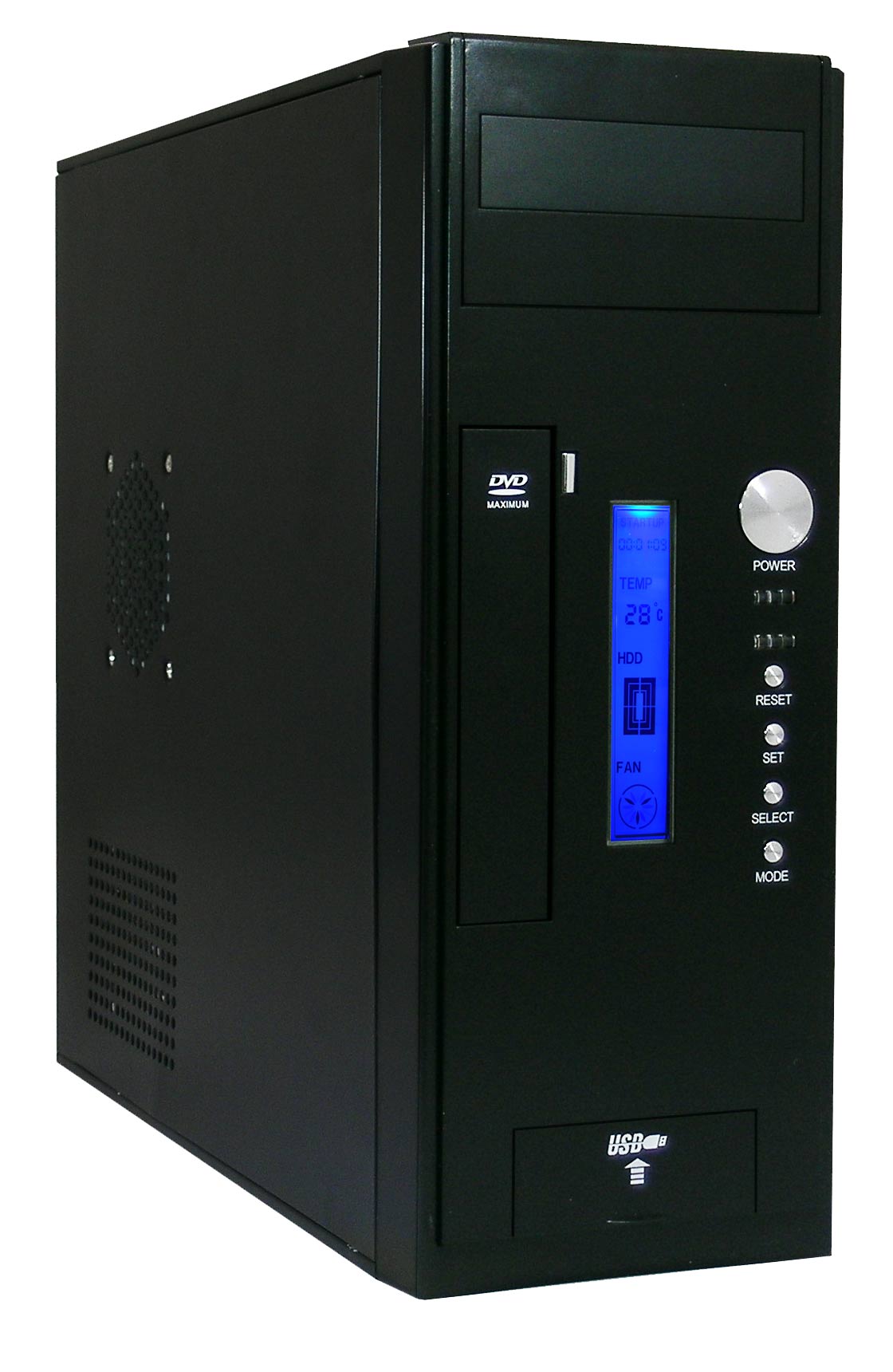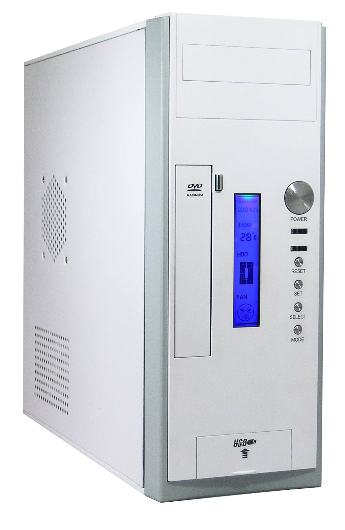 ケース内の温度上昇を抑える機能としてパッシブダクトを側面に備え、前面内部には稼動設定が可能な6cmFANを2基、背面内部には常時稼動する6cmFANを2基、電源ユニットには電源内部の温度に基づき自動速度調整を行う8cmFANを搭載しています。 ケース前面には、温度、稼働時間、FAN/HDDの動作を表示するディスプレイを搭載しています。