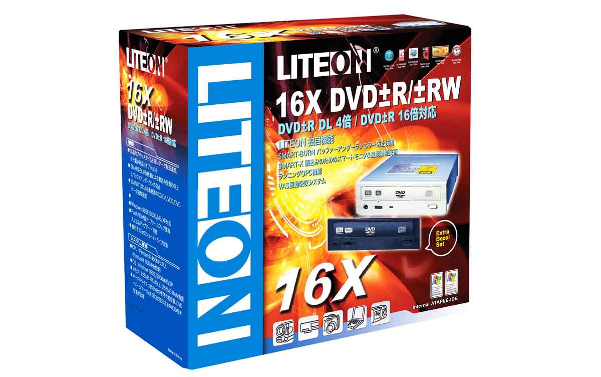 LITEON独自のSMART-BURN テクノロジー / SMART-X テクノロジー / ランニングOPC機能 / VAS振動吸収システムなどの最新の書込み技術で安定した高速ライティングを実現し、MTBF(平均故障間隔)においては70000時間と優れた品質をもっております。付属品は付替え可能な黒ベゼルとDVD再生ソフトの定番「PowerDVD 5」、ライティングソフト「neroOEM版」を同梱しています。