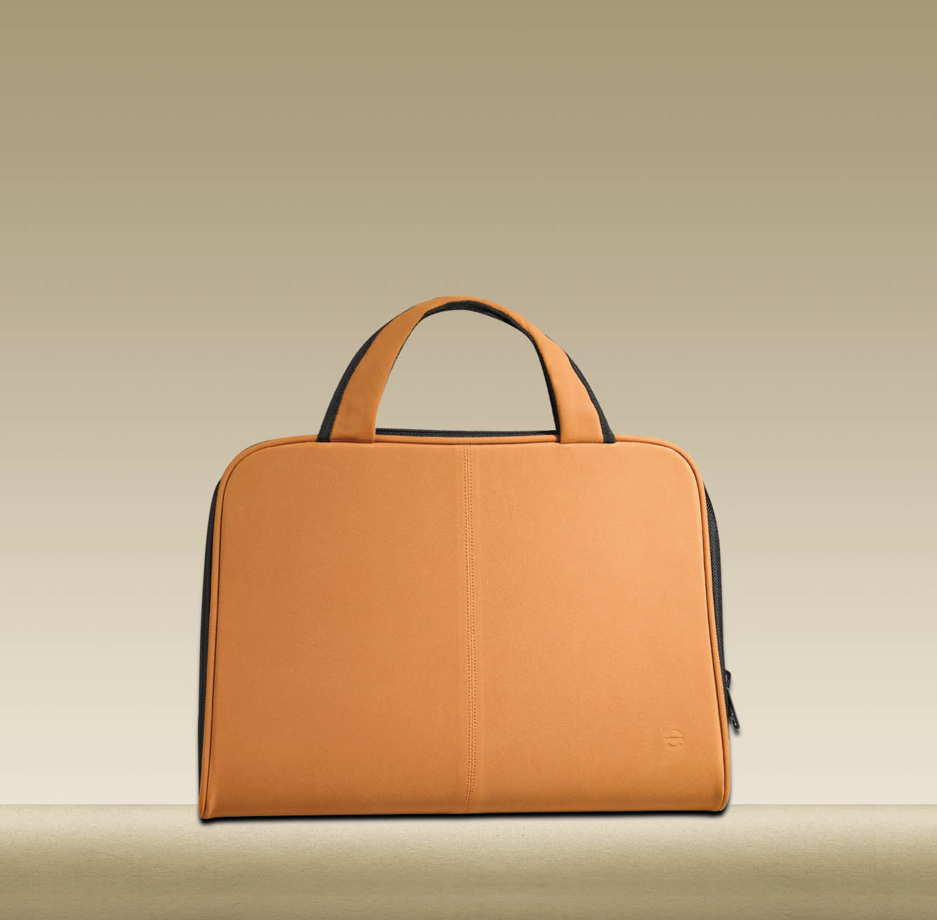 例えばトートバッグタイプの「UM601/UM606」では、持ち手部分に丈夫で持ち易い牛本革を使用し、さらにカバンの口部分と底にも牛本革で補強を施し、足金具(底鋲)を備えています。また携帯ホルダ/ペンホルダ/キーリングを備え、ジップポケット(中)には化粧品など小物を収納でき、少し大きめなベロクロポケット(大)には書類等を、ポケット(中)にはマウスやケーブルなど、様々な用途に利用できます。もちろんノートパソコン以外での利用にも便利に使えます。