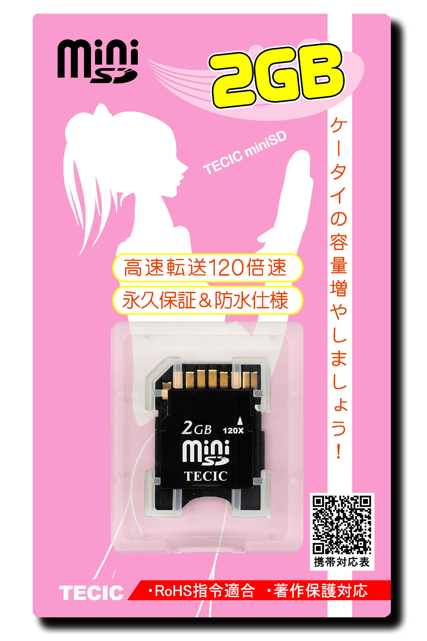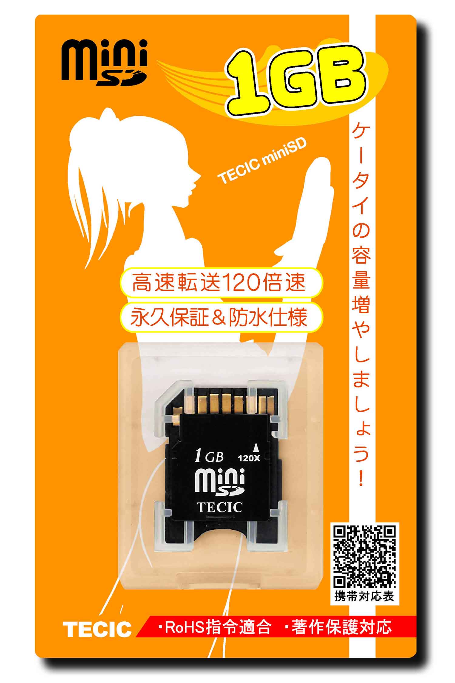 対応した120倍速のminiSD カードです。永久保証に加え、防水