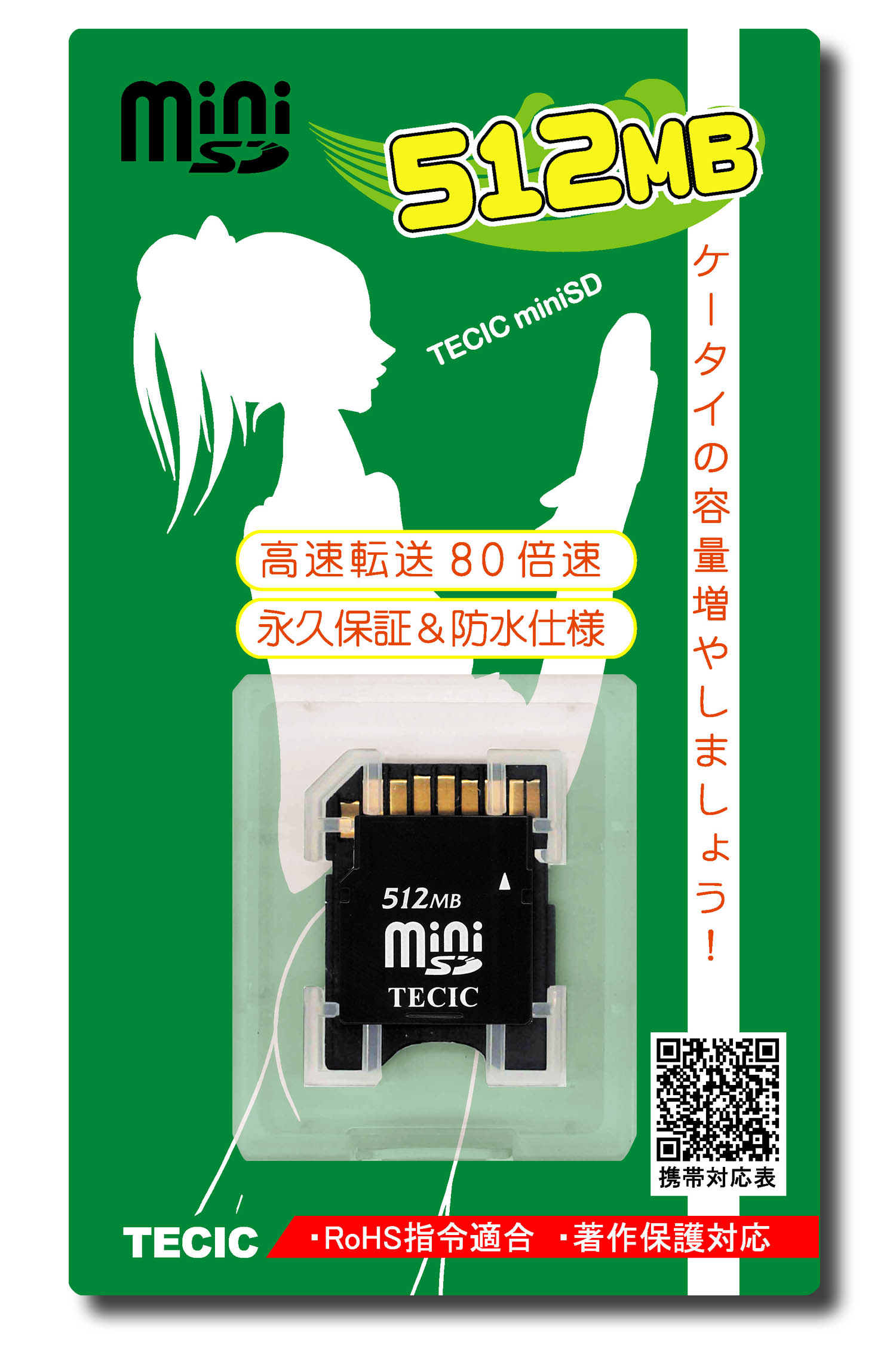120倍速(18MB/sec) を実現しています。 ※「TECIC miniSD 512MB」