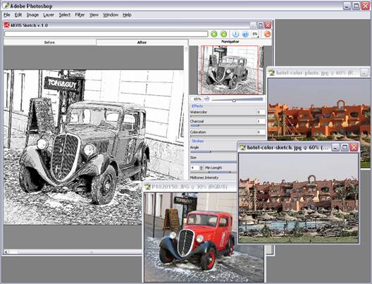 PhotoshopやPSPなどの標準フィルタ機能と比べ、AKVIS Sketchを使うと、実際に自分で描いたようなリアルな作画が可能になります。他ソフトのように高度な編集技術やレイヤー・マスク・ブラシなどの細かい操作は不要で、AKVIS Sketchはスライダの簡単操作のみで驚くような効果が得られます。