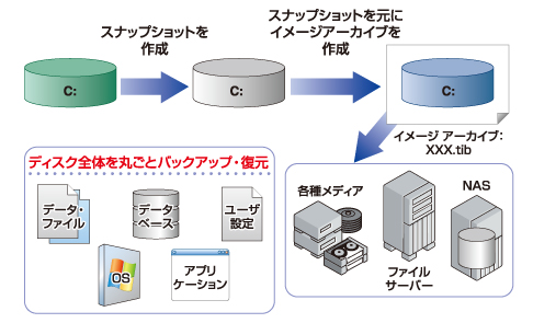 OS・アプリケーション・各種設定・データを含むディスク全体をバックアップ・復元
