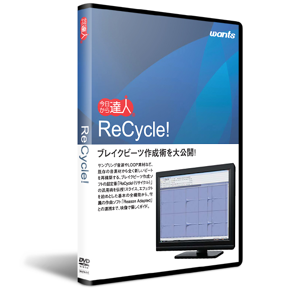 今回販売を開始したDVD講座「ReCycle!(リサイクル) 使い方講座」は、本ソフトをこれから使用する初心者を対象に制作されており、パソコン作曲入門者でもブレイクビーツ作成の一連の流れを理解できる内容となっている。 (全1巻/7講座)