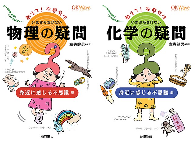 『教えて!左巻先生シリーズ』は、Q&Aサイト「OKWave」( (リンク ») )の「物理学」や「化学」カテゴリ等に投稿された身近なサイエンスに関する質問を各書とも約60件厳選し、理科教育の最前線で活躍中の左巻健男先生をはじめとする先生たちが専門的な回答・解説をつけました。