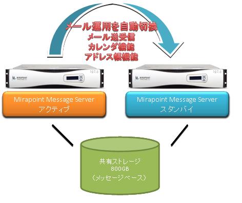 これに対して、「S6000-B2ミドルレンジ クラスタパッケージ」のベースとなる「Mirapoint Message Server」 は、メールサーバとして必要なコンポーネントを、メール専用の独自OS 「Mirapoint Messaging Operating System(MOS)」上で最適化し統合した目的特化型のアプライアンスで、メールサーバとしての製品単体の高い信頼性を確保しており、クラスタ化に必要な機能も搭載済みのため本番環境で迅速に稼働開始することが可能になります。