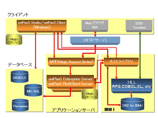 Magic uniPaaSアプリケーションの実行ライセンス(クライアント実行、サーバ実行、リッチクライアントサーバ実行)の他に、uniPaaS IBM i Gatewayライセンスが別途必要です。