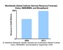 世界の携帯電話サービス収益予測:音声、SMS/MMS、モバイルブロードバンド