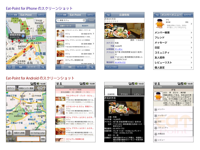 Eat-Point for iPhone と Eat-Point for Android のスクリーンショット