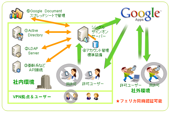 今回提供するGoogle Appsのシングルサインオン機能に追加されるフェリカ認証機能は、つぎのとおりとなります。