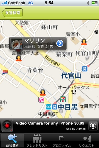 GPSで近所から友達を探したり、実際の友達と連絡を取り合ってアプリを共有すれば