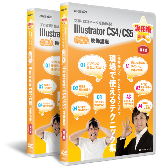 この度ウォンツが制作したDVD教材「Illustrator(イラストレーター)CS4/CS5対応 使い方講座 実用編」では、基本操作を習得している初級者以上を対象に、より実践的なプロの現場で使われるテクニックや、知っているだけで効率UPするTipsを習得することができます。