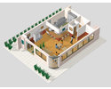 平面図で検討した店内レイアウトはワンタッチで立体化できます。視点位置を自由に変更できるので、実際の店内にいるような感覚で視覚的にレイアウトをチェックできます。人物のパーツを配置して通路の広さを確認したり、オープンキッチンの見え方の確認や、化粧室への出入りを隠す鉢植えの効果など、視覚的なシミュレーションが可能です。