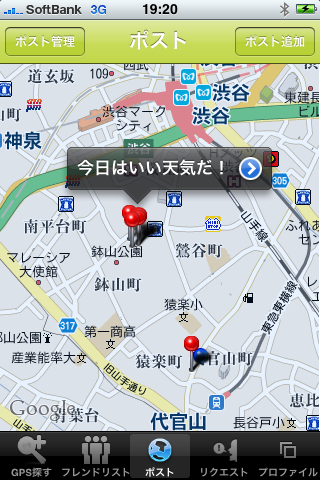 全国の「ドコトモ」ユーザーや友達とチャットで気軽に繋がることができ、自分の居場所からその場所の情報投稿(ポスト)が行えることが主な特徴。