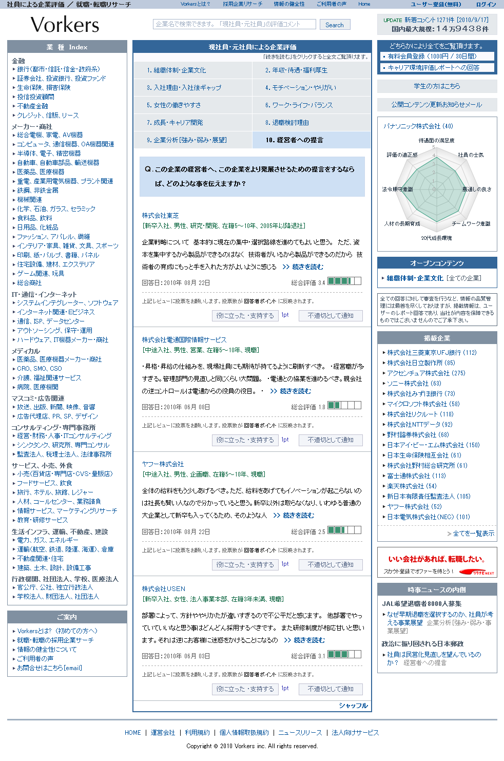 今回は、2010年11月8日-2010年11月14日に「キャリア環境評価レポート」の新規回答が追加された企業を発表致します。