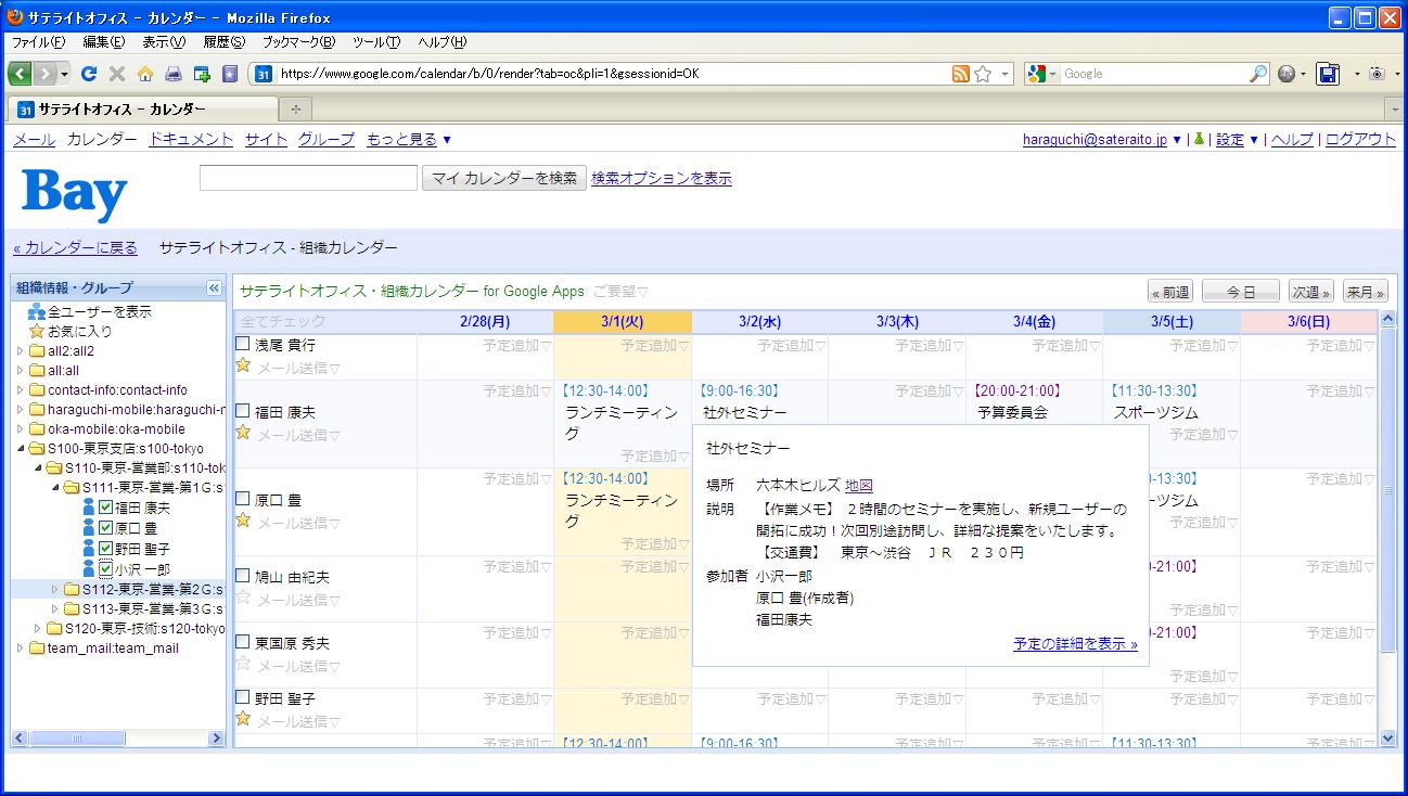 組織カレンダー機能を、 Google Apps(TM) Market place にて無償提供