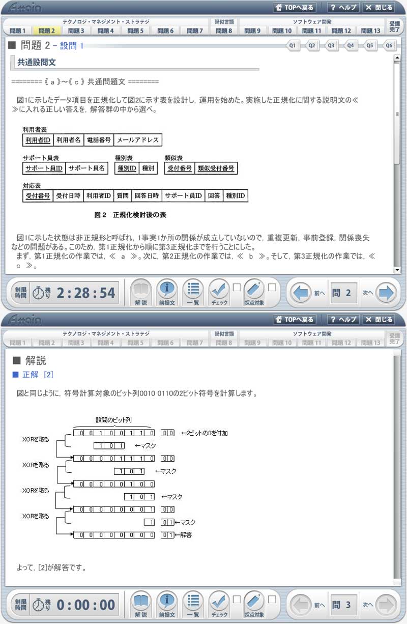 今回「動学.tv」に公開したコンテンツ「基本情報技術者試験対策問題集 平成23年度春期試験対策」は、高度IT人材の知識と技能を測る基本情報技術者試験の、資格取得を目指す人を対象としたコンテンツです。同コンテンツは「動学.tv」で公開している大半の講座とは異なり、動画教材ではありません。Web上で動くFlashのプログラムとなっており、動画や文書ファイルでの教材配信とは違いインタラクティビティを有しています。基本的には、画面に従って問題集を解いていく形式ですが、問題集には「問題学習」と「模擬試験」という2つのモードが用意されており、それぞれ学習方法が異なります。まず「問題学習」は、平成22年度秋期試験問題を含む6試験分を全て学習できるモードで、問題を解きながら解説ページもその場で見ることができます。「模擬試験」モードでは、実際に各年度各期で出題された過去問題を制限時間内に回答していくモードとなっています。どちらのモードでも分野別ランダム出題方式により繰り返し学習が可能です。「問題学習」でじっくり学習して、自信が付いてきたら「模擬試験」にチャレンジする、という順で学習するのが効果的です。そしてその採点結果によって苦手傾向を洗い出していけば、徐々に正解率が上がっていくことでしょう。