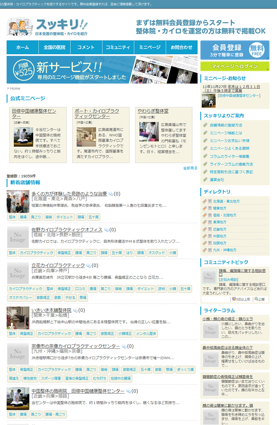 日本全国の整体院・カイロプラクティック紹介サービス「スッキリ」内で、
