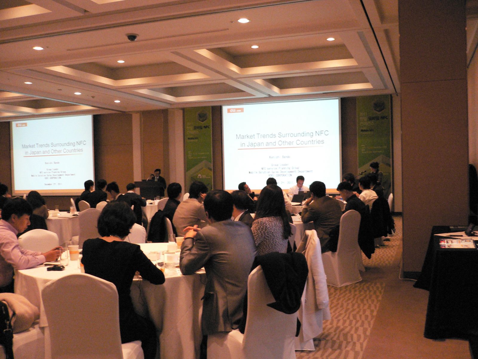 日本勢としては、KDDI、NTTドコモ、ソフトバンクモバイルの携帯キャリア3社をはじめ、スマートカード会社やベンダー、そしてモバイルチケット会社による講演が行われました。また、韓国勢はKTやSK Planet、そして大学研究機関による最新セキュリティ技術、VisaKoreaによるモバイルペイメントの講演が行われ、カンファレンスは盛況に終了いたしました。