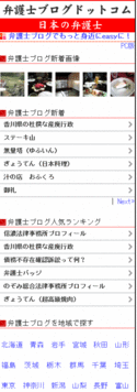 都道府県毎、市毎に細分化され、依頼者さんは近くの弁護士さんのブログを閲覧参照し質問や相談を直接コンタクト、各地区ページから複数のFPさんへのコメントが可能で、ニュースリリース、求人情報ページ構成で、2007年12月開設、2011年11月現在260事務所、月間8万UU70万PVに達しました。