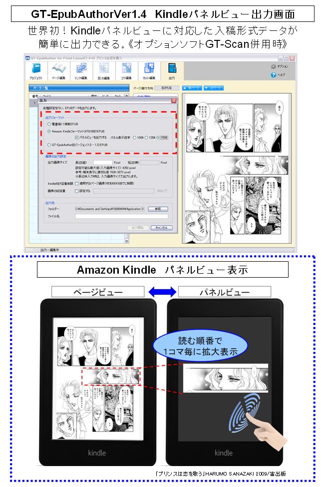 『EpubAuthor1.4』は、日本国内で入手できるすべてのEPUB規格リーディングシステムに対応し、かつ、オプションソフトウエアを組み合わせれば、簡単に高品質な電子書籍フォーマットを制作することができるオーサリングソフトウエアです。『EpubAuthor1.4』を使うことで、特定の作業者の専門知識や経験に頼ることなく、短期間で大量の電子書籍フォーマットを制作することができます。また、「Amazon Kindle」の「パネルビュー」*7に対応した入稿形式データを、世界で初めて、自動的に制作することを可能にしました*8。