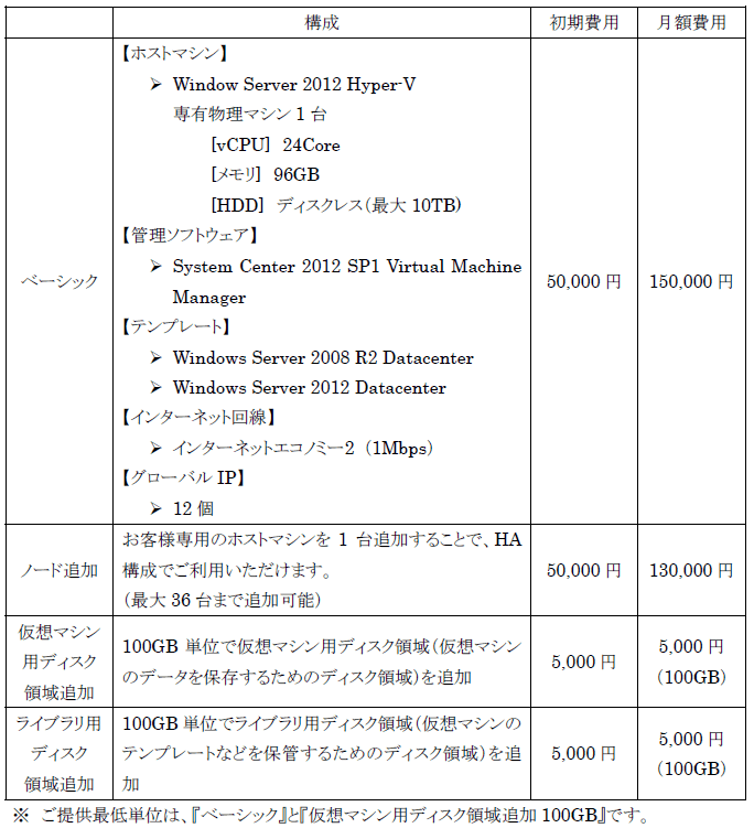 -高パフォーマンス・高可用性のプライベートクラウド基盤に必要となるハードウェア及びソフトウェアを購入することなく安価に「利用」