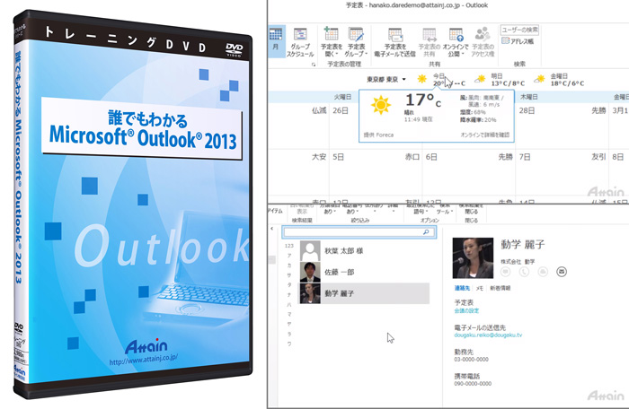 「誰でもわかるMicrosoft Outlook 2013」では、メールのアカウント設定に始まり、メールソフトとしての基本的な操作や、連絡先の設定、予定表やタスクを使ったスケジュール管理、メモの使い方などを、動画で学びます。