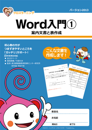 中高年・初心者専門教材「クロスラーニング:Word入門1-2013 -案内文書と表作成-」