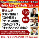 masuidrive、島根大学野田教授、Rails技術者認定試験運営委員会 委員長 吉政忠志氏が大阪で、講演します。