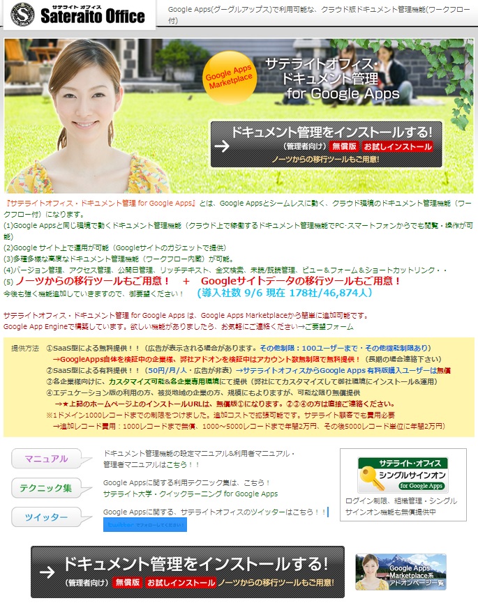 <サテライトオフィス・ドキュメント管理 for Google Apps に関するURL>