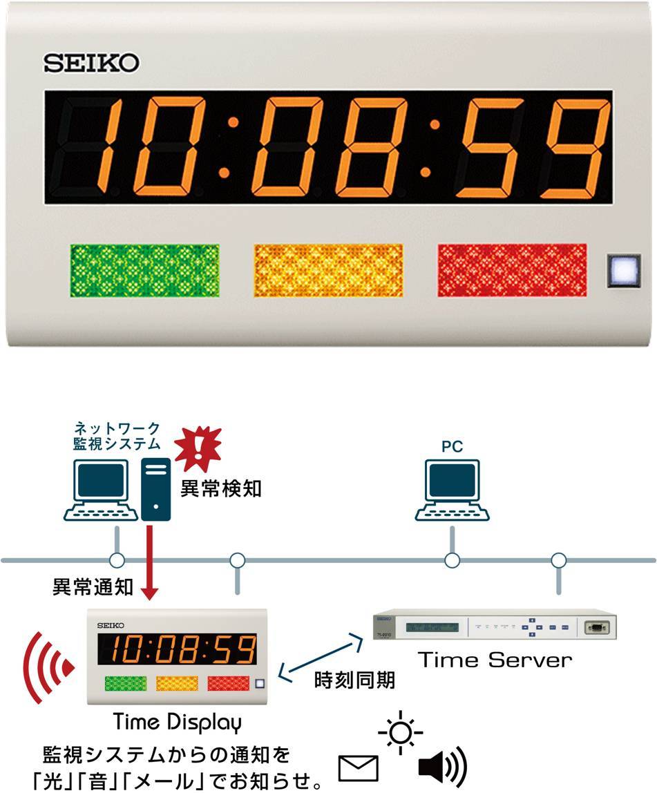 「Time Display TD-450」は、「Time Display TD-200シリーズ」(2007年発売開始)をご利用いただいているお客様からの「システム異常を通知できないか?」「異常発生時の時刻を正確に知りたい。」という要望にお応えし、従来の時計表示機能に警告やアラーム機能としての表示灯(LED)とブザーを追加した製品です。