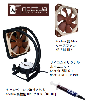 (水冷CPUクーラー限定)にてNoctua製ケースファンを選択すると、高性能CPUグリス「NT-H1」を無料で塗付します。
