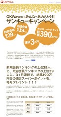 実施概要:「OKWave」にて、「質問」に対して投稿された「回答」への評価指標にて期間中の新規会員、既存会員それぞれの上位39名に楽天スーパーポイントを進呈(※2)。