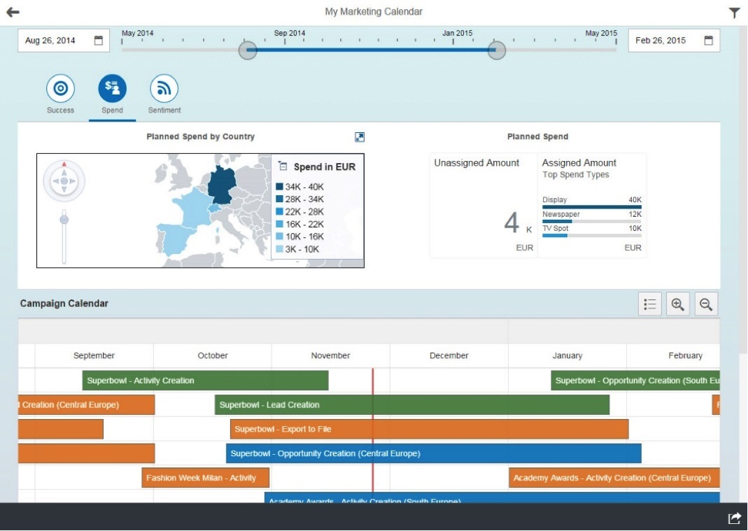 SAP hybris Marketing ソリューションは、リアルタイムのコンテクスチュアル・データ(状況に即したデータ)を活用することで、特定の顧客や見込み客の両方に関し、全方位のプロファイルを更新し続けることができます。こうしたダイナミックなプロファイルは、個客の過去の行動履歴や、将来の行動予測、その瞬間に最も関心のある物事などを含みます。強力なターゲティング・ツールを利用することで、マーケターは、Webサイト、Eメール、デジタルサイネージの広告を通じて、パーソナライズされた1対1のキャンペーンで訴求したり、営業電話やサービスコールをしたり、モバイルアプリやモバイルデバイスにプッシュ・メッセージを送ることが可能です。また顧客の行動に応じてリアルタイムかつ自動的にキャンペーンを実施したり、マーケターがキャンペーンの計画やスケジュールの設定をしたりできるほか、マウスを数回クリックするだけでアドホックなキャンペーンの作成もできます。