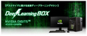 「DeepLearning BOX」は、日本で初めてディープラーニングGPUトレーニング・システムの「NVIDIA(R) DIGITS(TM)ソフトウェア」の再配布ライセンスを取得。同ソフトがプレインストールされた、深層学習(DeepLearning)研究のスピードアップ・プラットフォームとなるオールインワンモデルです。