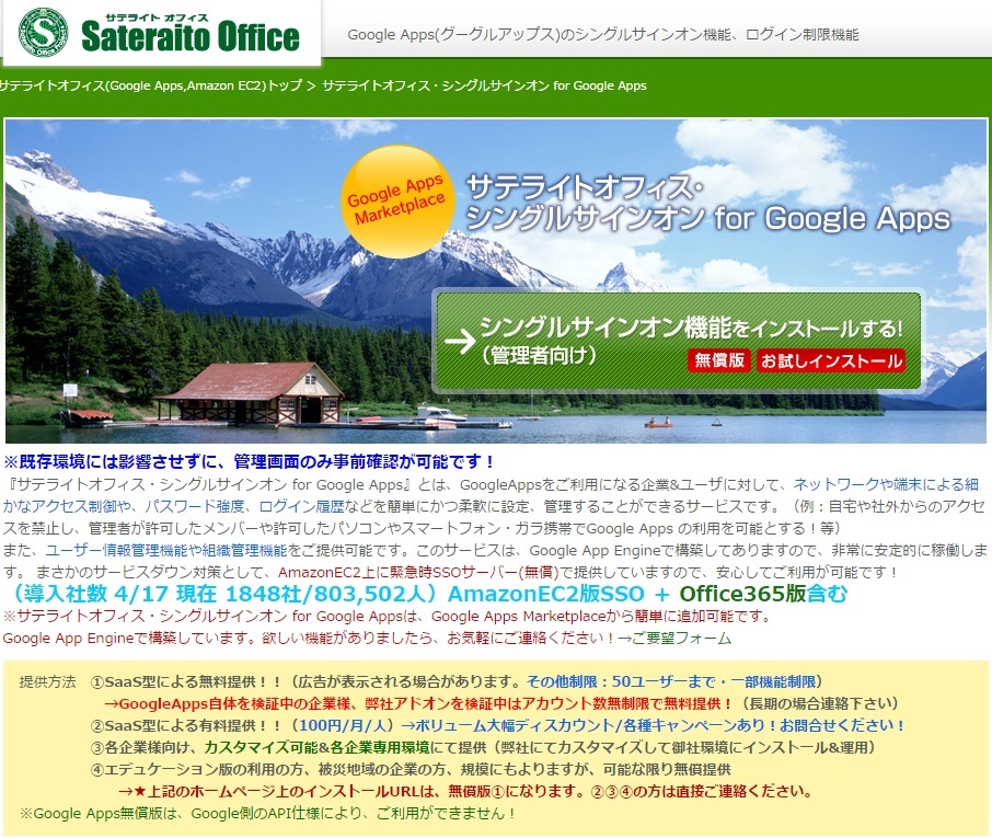 <サテライトオフィス・シングルサインオン for Google Apps に関するURL>