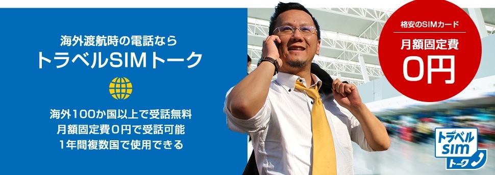 「トラベルSIMトーク」は、月額基本料0円で海外での通話料が最大「0円」で、1年間何分間でも、ずっと話せるSIMカードです。通常の携帯電話契約や格安SIMの場合、海外で電話をする場合、受信者が国際電話料金を負担することに対し「トラベルSIMトーク」は受信者負担が0円、発信者もお得な国際電話を使うことで格安に相互通話をすることができます。