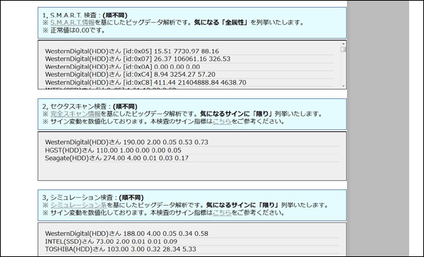 ※ これらの解析済みデータは、データ復旧サービスのドライブ状態検査等(セクタ状態判断、不良セクタ位置予測、データスキャン作業)に利用しております。